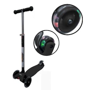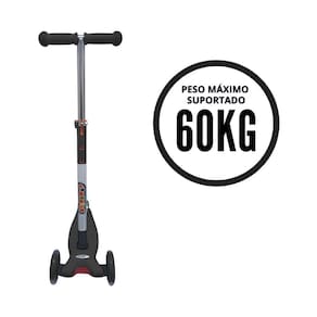Perfeito para se divertir em diferentes lugares, por ser leve permite um fácil transporte e garante a diversão. Possui três rodas com led, sendo duas dianteiras de 120mm e uma traseira de 76mm, além de possuir sistema de freio na roda traseira acionado com o pé, garantindo a segurança do seu filho. Super resistente suporta até 60kg e é indicado para crianças a partir de 24 meses.