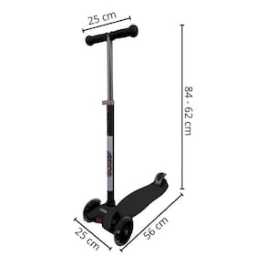 Medidas do patinete: 84 x 25 x 56 cm (altura x largura x profundidade)