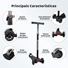 🛴 Patinete Infantil com Rodas de LED | Altura Ajustável | Dobrável e Certificado INMETRO