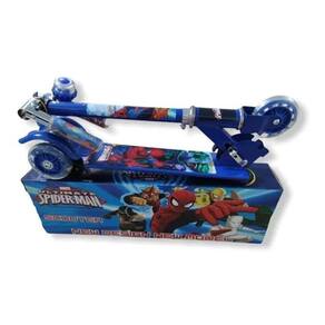 Patinete infantil metal homem aranha 3 rodas com led - buzina - patinete infantil com 3 rodas translucidas que acendem quando em movimento - com buzina - freio traseiro - tamanho montado: aprox. 78cm alt. X 60cm comp. X 10cm larg. - idade recomendada: 03 - 06 anos - peso suportato: 60 kg - totalmente dobrável para facilitar o transporte - excelente qualidade e fácil de montar - punhos personalizados - lixa anti derrapante com detalhes dos personagens