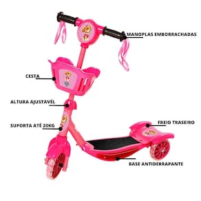Patinete Infantil da Skye Patrulha Canina é incrível, possui manoplas emborrachadas e 3 rodas que ajudam a dar mais estabilidade e segurança para criança que ainda está aprendendo a andar, desenvolvido em material leve e resistente, fácil de transportar para brincar em qualquer lugar