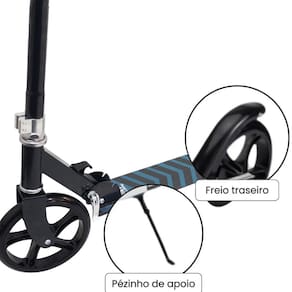 Desenvolvido com o intuito de diminuir distâncias e na maioria dos casos para divertir o usuário e os amigos, o patinete vem equipado com duas resistentes rodas e uma plataforma de apoio para os pés muito bem elaborada. Você vai se amarrar com o patinete, feito especialmente para proporcionar mais diversão. Esse patinete possui certificação do Inmetro e é indicado para crianças maiores de 3 anos.
