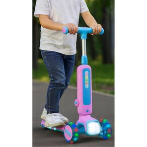 - Recomendado a partir de 6 anos- Dimensões aproximadas do produto: 65 x 33 x 78,5 cm- Altura ajustável até 78 cm- O assento suporta até 20 kg- O deck suporta até 60 kg- Possui assento retrátil- Emite luzes e sons- Com sistema lean-to-steer- Material: Ferro, Alumínio, Plástico- Haste: Utiliza 02 pilhas AA- Deck: Utiliza 03 pilhas AA