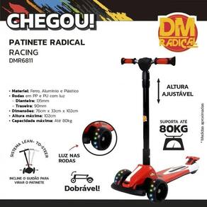 O Patinete Radical Racing é irado! Possui luz nas rodas e é dobrável, facilitando no momento de guardar e transportar. Com sistema lean-to-steer, é só inclinar o guidão para o patinete virar.