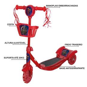 Características: - Cestinha - Sistema de freio traseiro - Manoplas acolchoadas - Rodas em Gel: 3cm