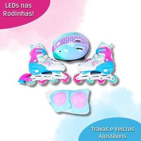 Patins In Line Ajustável Colorido Com Kit De Proteção 34-37