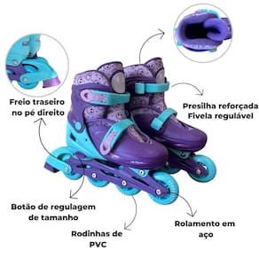 - os patins também contam com sistema de rodas estáveis e duas presilhas reforçadas para uma melhor estabilidade dos pés.
