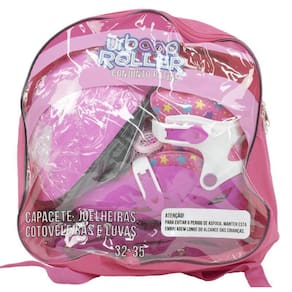 Kit patins infantil in line e tri line com kit de segurança tamanho 36/39 rosa bbr toys Kit: par de patins com 3 ou 4 rodas, com um capacete, par de joelheiras e um par de cotoveleiras. Rodas traseiras flexíveis, ajustável, com rodinhas de apoio e freio em apenas um dos lados.