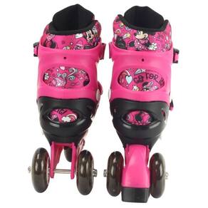 Estilo encantador, seguro e cheio de charme o kit patins disney minnie 4 rodas com kit proteção da bbr toys é perfeito para as pequenas fãs da personagem mais fashion da disney que adoram se divertir com estilo. Com um design fofo e colorido, ele garante momentos de alegria, confiança e muita magia sobre rodas Com sistema 2 em 1, é possível alternar entre as modalidades inline ou triline conforme o nível de habilidade da criança. Os patins são ajustáveis tamanhos 32 a 35 , suportam até 60kg e vêm acompanhados de um kit de proteção completo, com capacete, protetores de joelho, cotoveleiras e luvas , para garantir total segurança durante cada aventura. Feito com materiais resistentes e confortáveis, é ideal para crianças a partir de 6 anos explorarem o mundo com diversão e confiança -botas acolchoadas -freio no pé dianteiro -presilhas de fecheamento -rodas de alto desempenho -botão de ajuste de tamanho