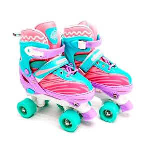 Suas 04 rodas garantem mais estabilidade e segurança para quem está aprendendo a andar. Com ajuste rápido entre 4 números ele se encaixa rapidamente aos pés, e garante o uso por mais tempo.