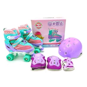 Patins infantil roller quad unitoys com kit de proteção cor: violeta tamanho: 34-37 patins infantil roller quad unitoys com kit de proteção