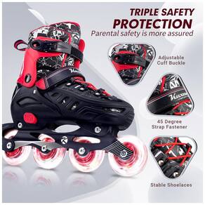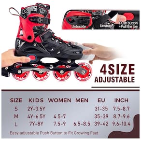 TAMANHO AJUSTÁVEL: Verifique nossa tabela de tamanhos na imagem do produto para garantir a escolha do par correto. Com um simples botão de ajuste facilita e torna conveniente a adaptação a diferentes tamanhos, garantindo anos de diversão. Não é mais necessário se preocupar com o crescimento dos pés do seu filho.