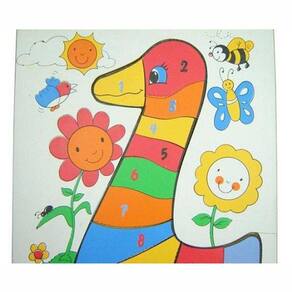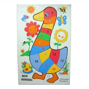 Pato Numérico Quebra Cabeça Em Madeira - Dicá Lindo quebra-cabeça de números, com cores fortes e vivas. Peças em madeira, estimulam a criança a relacionar, encaixando o número correto com o fundo da placa. Excelente acabamento. Desenvolve a coordenação viso-motora, criatividade, e noção de espaço. Idade: a partir de 3 anos. Certificação Inmetro: CE-BRI/ICEPEX-N 00174-82 NM300/2002.