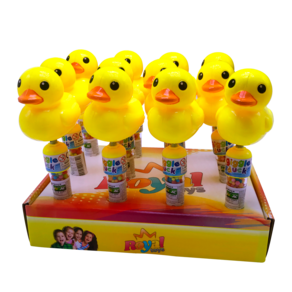 Conheça o Pato Toys, o brinquedo que combina diversão e sabor de uma forma única para os bebês! Este encantador patinho amarelo, acoplado a um tubo por uma mola, oferece um movimento saltitante que capta a atenção e a alegria dos mais pequenos. Além da diversão, o tubo vem cheio de balinhas sabor Tutti Frutti, adicionando um toque doce à experiência.