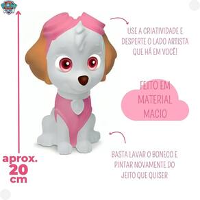 Um boneco da cachorrinha mais amada da Patrulha Canina para pintar e brincar. E melhor ele é lavável, é só lavar e a brincadeira recomeça Vem com 5 tintas e pincel. Desenvolve a criatividade, coordenação motora e estimula os sentidos da criança.