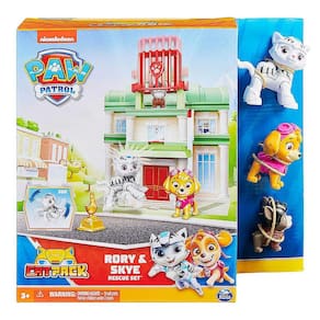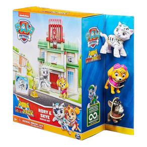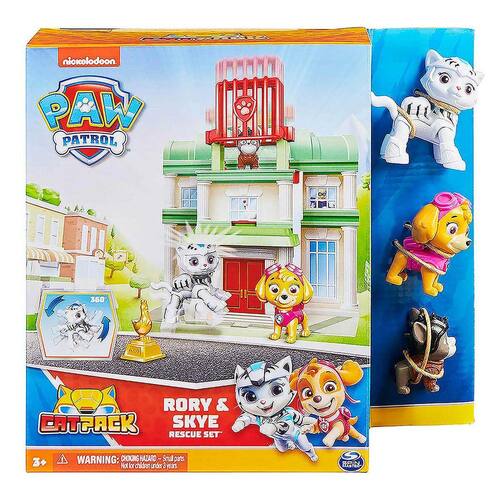 Apresentando Cat Pack, os mais novos amigos felinos dos filhotes da Patrulha Canina! Corra para salvar o dia e impedir que Hubcap roube a estátua de Chickaletta no telhado da prefeitura da Baía da Aventura com Rory e Skye ou resgate Chickaletta de dentro do cofre do banco com Leo e Marshall assim como eles fazem no show! Com os brinquedos da Patrulha Canina, a criança pode explorar sua criatividade e melhorar suas habilidades motoras brincado com seus filhores de patrulha Canina favoritos.