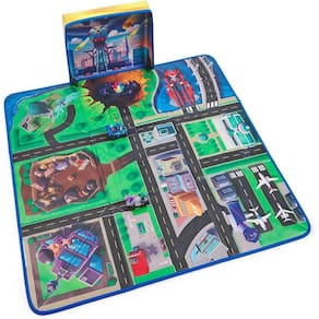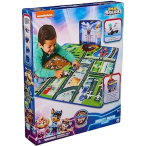 O Tapete Playmat do filme "Patrulha Canina: Um Filme Superpoderoso" é um mapa em grande escala da Cidade da Aventura com várias áreas para brincar, apresentando elementos-chave vistos no filme!