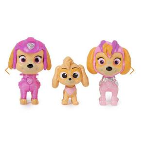 Leve para casa três gerações da sua filhote favorita da Patrulha Canina: Skye! Neste conjunto exclusivo de figuras, cada figura é feita com design e estilo autênticos da Patrulha Canina, para que elas se pareçam como nos filmes!