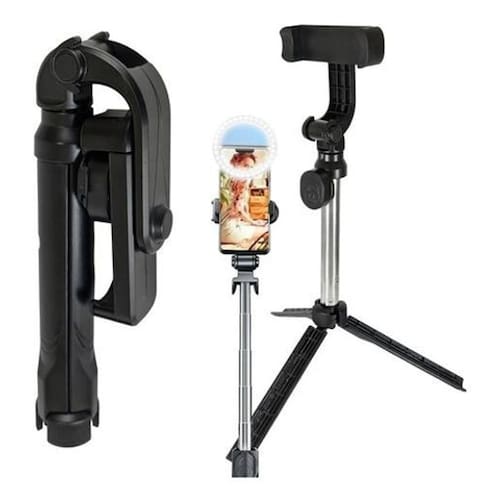 é um kit de suporte portátil selfie que pode ser utilizado como mini tripé, tripé de mesa e bastão de selfie. Além disso, ele pode fornecer suporte estável e controle de movimento sem fio. Os estabilizadores elevaram o nível dos vídeos e fotos tiradas com o celular. É um dispositivo 3 em 1, pode ser utilizado como estabilizador, suporte e selfie stick