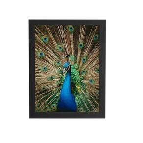 Pavão Azul Animais Fotografia Quadro Moldura Preta 60X40Cm