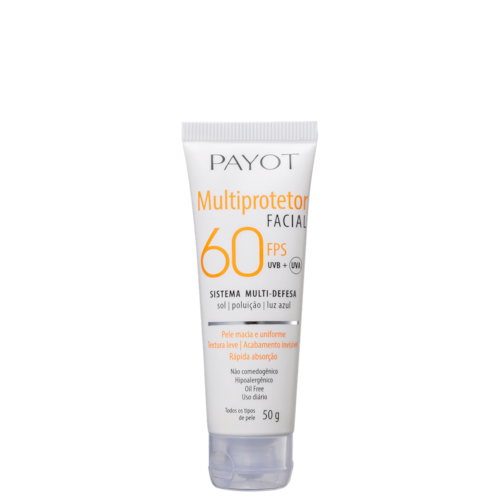 Protetor solar facial. Payot Multiprotetor FPS 60 contém formulação oil free e ativos de alta eficácia que hidratam e protegem o rosto dos efeitos nocivos do sol, poluição e luz azul.