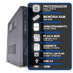 PC Desktop Intel Core i5 10ª Geração 4GB RAM SSD 240GB