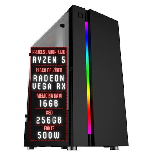 Graças ao alto poder do processador AMD Ryzen 5, que conta com 12 núcleos, aliado ao desempenho extremo da placa de vídeo Radeon VEGA, a sua jogatina está garantida. Jogue CSGO, Fortnite, FIFA, PUBG, Minecraft, Dota2, FreeFire, Roblox, GTA, ou qualquer outro game famoso do momento sem se preocupar com lentidão ou travamentos. Saia na frente dos seus adversários com gráficos limpos e fluidos, enxergue cada mínimo detalhe, e esteja sempre um passo na frente do seu inimigo.