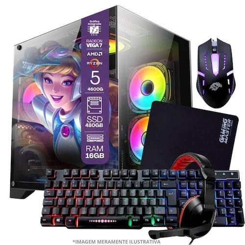 01 - PC Gamer AMD Ryzen 5 4600G, 16GB RAM, Placa de video Radeon Vega 7, SSD 480GB, Fonte 550W + Kit Gamer Completo