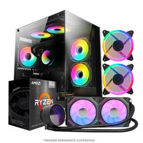 01 - PC Gamer AMD Ryzen 5 5600GT, 16GB RAM, Placa de video Radeon Vega 7, SSD 480GB, Fonte 550W, Gabinete Aquário, Water Cooler + Monitor 23” LED 75hz