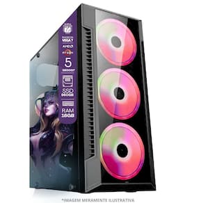01 - PC Gamer AMD Ryzen 5 5600GT, 16GB RAM, Placa de video Radeon Vega 7, SSD 960GB, Fonte 550W + Monitor 23” LED 75hz + Kit Gamer Completo