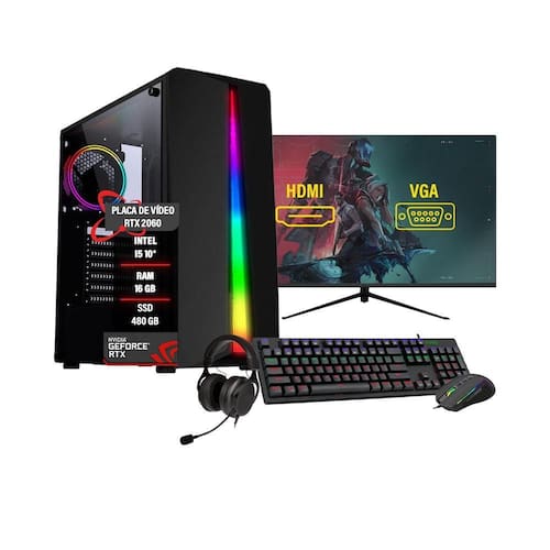 Pc gamer completo intel core i5 10 rtx 2060 16gb ssd 500gb Pc gamer com uma configuração focada em colecionar vitórias, a linha de pc gamer é ideal para quem busca desempenho, velocidade e qualidade de imagem em seus jogos um pc gamer completo e repleto de componentes potentes, desde gabinete até o processador, esse sem dúvida é o arsenal que você precisa para conquistar o universo dos games. Processador, memória e tudo que você precisa saber