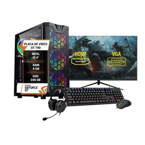Pc gamer completo intel i3 4º gt 740 ram 8gb ssd 240gb 27 Este pc gamer é a máquina definitiva para conquistar a gameplay perfeita em seus jogosEquipado com um processador potente i3 de 4 geração, placa de vídeo gt 740 2gb e 8gb de memória ram ddr3 para enfrentar desafios com precisão e velocidade inigualáveis, ssd 240gb para seus jogos e aplicativos carregarem rapidamente e garantir uma experiência fluida e sem interrupções. Domine seus oponentes e conquiste a glória com este arsenal gamer de alto nível gg Processador i3 4130 4 geração 3.4ghz e 4 núcleosPlaca mãe h81, com socket 1150, suporta processadores intel core i7 / i5 / i3 de 4 geração e expansão de até 16gb de memória ram ddr4Lan 10/100/1000 mbpsPlaca de vídeo gt 740 2gb 128bits, suporta até 3 monitores ao mesmo tempo8gb de memória ram ddr3Ssd 240gbFonte 600w bivoltSistema operacional windows 11 Está incluso neste anúncio os seguintes itens:1 cpu com os componentes descritos acima1 monitor de 27 polegadas1 teclado e mouse gamer com fio1 headset gamer1 webcam1 mousepad gamer1 adaptador wifi usb1 bluetooth usbCabos de alimentação Homologação Anatel: 025931304858 Marca: Wj Info