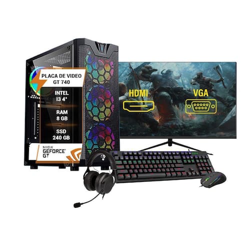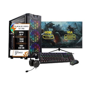 Pc gamer completo intel i3 4º gt 740 ram 8gb ssd 240gb 27 Este pc gamer é a máquina definitiva para conquistar a gameplay perfeita em seus jogos Equipado com um processador potente i3 de 4 geração, placa de vídeo gt 740 2gb e 8gb de memória ram ddr3 para enfrentar desafios com precisão e velocidade inigualáveis, ssd 240gb para seus jogos e aplicativos carregarem rapidamente e garantir uma experiência fluida e sem interrupções. Domine seus oponentes e conquiste a glória com este arsenal gamer de alto nível gg