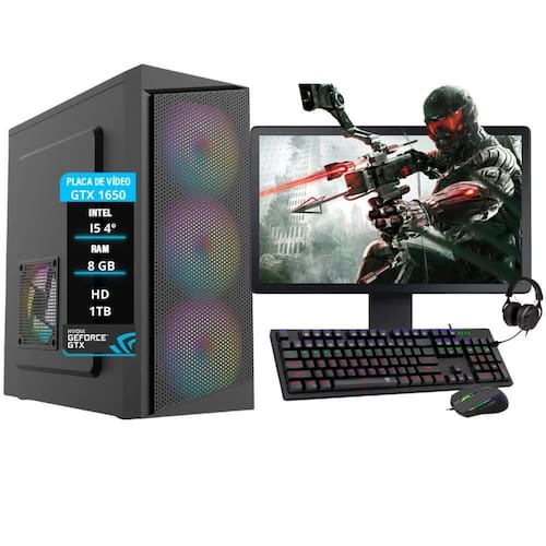 Pc gamer completo intel i5 4º geração 1650 mem. 8gb hd 1tb Os pcs gamer amorim têm uma configuração focada em colecionar vitórias, a linha de pc gamer é ideal para quem busca desempenho, velocidade e qualidade de imagem em seus jogos um pc gamer completo e repleto de componentes potentes, desde gabinete até o processador, esse sem dúvida é o arsenal que você precisa para conquistar o universo dos games. Processador, memória e tudo que você precisa saber Esse pc gamer tem tudo para seus jogos. Equipado com o processador intel core i5 4570, placa de vídeo 1650 24b, hd de 1tb e uma memória ram de 8gb que vai te dar a vantagem em cada jogada. A fonte 500w libera todo o seu potencial e faz acontecer as melhores estratégias. Conquiste a partida, domine o oponente com essa máquina. Porque pc gamer é na amorim Processador intel i5 4570 4º geração com 3.60 ghz e 4 núcleos Placa mãe h81 - socket 1150 suporte para processadores intel core i3/ i5 / i7 com expansão de até 8gb com 2 slots ddr3 lan 10/100/1000 mbps 2x usb 3.0 2x usb 2.0 Placa de vídeo 1650 4gb gddr5 com 128bit 8gb de memória ram ddr3 Hd de 1tb Fonte real 500w bivolt Sistema operacional windows 11 Interface de vídeo: hdmi, dvi e displayport. Especificações técnicas monitor: Monitor led full hd de 19'' polegadas Resolução de 1600x900 pixel com 60ghz e tempo de resposta de 5ms Interface de vídeo hdmi e vga Bivolt automático Está incluso neste anúncio os seguintes itens: 1 cpu com os componentes descritos acima 1 monitor de 19 polegadas 1 combo teclado, mouse, mousepad e headset gamer 2 cabo de alimentação para a cpu e monitor 1 adaptador bluetooth Marca: Não Informado
