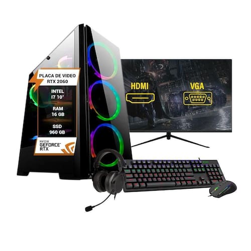 Pc gamer completo intel i7 10 rtx2060 16gb ssd 960gb 27