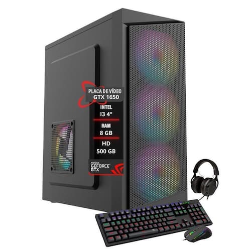 Pc gamer i5 1650 8gb ram hd 1tb ssd 120gb Os pcs gamer têm uma configuração focada em colecionar vitórias, a linha de pc gamer é ideal para quem busca desempenho, velocidade e qualidade de imagem em seus jogos um pc gamer completo e repleto de componentes potentes, desde gabinete até o processador, esse sem dúvida é o arsenal que você precisa para conquistar o universo dos games. Processador, memória e tudo que você precisa saber Esse pc gamer tem tudo para seus jogos. Equipado com o processador i3- 4130 4 geração , placa de vídeo 1650 4gb, hd 500gb, ssd 120gb, placa mãe h81 socket 1150 e memória ram de 8gb ddr3 que vai te dar a vantagem em cada jogada. A fonte 500w libera todo o seu potencial e faz acontecer as melhores estratégias. Conquiste a partida, domine o oponente com essa máquina. Porque pc gamer é na amorim Processador intel core i3- 4130 3.40ghz 4 geração - 2 núcleos Placa mãe h81 socket 1150, suporte para processadores intel core i3/i5/i7, lan 10/100/1000 mbps e expansão de até 8gb. Placa de vídeo 1650 4gb 128 bits. 8gb de memória ram ddr3 Hd 500gb Ssd 120gb Placa de rede: 10/100/1000 mbps Fonte real 500w bivolt Sistema operacional windows 10 Interface de vídeo: hdmi, displayport e dv-i. Suporta até 3 monitores simultâneos Está incluso neste anúncio os seguintes itens: 1 cpu com os componentes descritos acima 1 teclado gamer mecânico, luzes rgb com conexão usb 1 mouse gamer de 3200dpi, botões laterais e de dpi, conexão usb e luzes rgb 1 fone gamer e conexão usb e p2 1 mousepad gamer Cabos de alimentação Marca: Não Informado Ean: 7908975300251