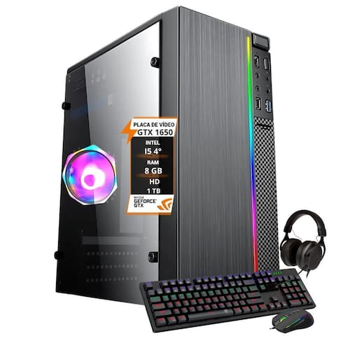Pc gamer intel i5 4º geração 1650 mem. 8gb hd 1tb Pc gamer com uma configuração focada em colecionar vitórias, a linha de pc gamer é ideal para quem busca desempenho, velocidade e qualidade de imagem em seus jogos um pc gamer completo e repleto de componentes potentes, desde gabinete até o processador, esse sem dúvida é o arsenal que você precisa para conquistar o universo dos games. Processador, memória e tudo que você precisa saber Esse pc gamer tem tudo para seus jogos. Equipado com o processador intel core i5 4570, placa de vídeo 1650 de 4gb, hd de 1tb e uma memória ram de 8gb que vai te dar a vantagem em cada jogada. A fonte 600w libera todo o seu potencial e faz acontecer as melhores estratégias. Conquiste a partida, domine o oponente com essa máquina. Porque pc gamer é na amorim Processador intel core i5 4570 4º geração com 2.90 ghz e 6 núcleos Placa mãe h81 scocket 1150 e suporte para processadores de 4º geração, lan 10/100/100mbps com expansão até 8gb Placa de vídeo 1650 de 4gb 8gb de memória ram ddr3 Hd de 1tb Fonte 600w bivolt Sistema operacional windows 11 Interface de vídeo: hdmi, display port e dv-i Suporta até 3 monitores simultâneos Está incluso neste anúncio os seguintes itens: 1 cpu com os componentes descritos acima 1 teclado gamer 1 mouse gamer 1 fone gamer 1 mousepad gamer 2 cabos de alimentação 1 adaptador usb wi-fi 1 adaptador usb bluetooth Marca: Não Informado