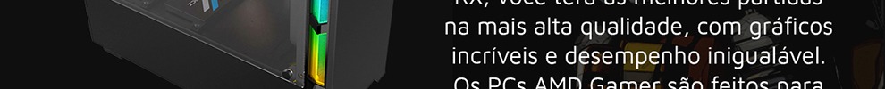 A Linha Neologic AMD Gamer combina a potência e a velocidade das placas de vídeo e dos processadores AMD com a qualidade e confiabilidade dos produtos Neologic. Contando com os processadores Ryzen de terceira geração e as placas de vídeo Radeon RX, você terá as melhores partidas na mais alta qualidade, com gráficos incríveis e desempenho inigualável. Os PCs AMD Gamer são feitos para campeões!