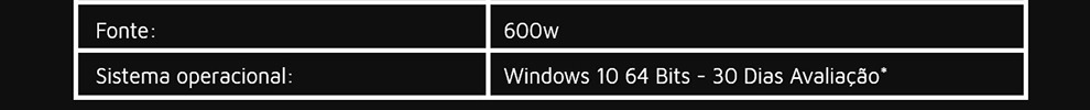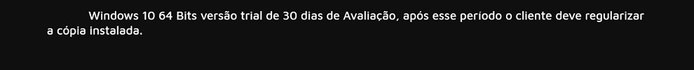 Sistema Operacional: Windows 10 64 Bits - 30 Dias Avaliação (após esse período o cliente deve regularizar a cópia instalada)