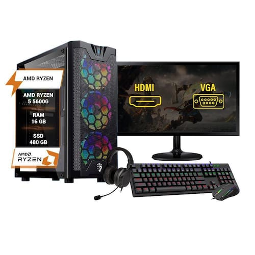 Pc gamer ryzen 5 5600g 16gb ram ddr4 ssd 480gb monitor 24 Este pc gamer é a máquina definitiva para conquistar a gameplay perfeita em seus jogosEquipado com um processador potente amd ryzen 5 5600g e 16gb de memória ram ddr4 para enfrentar desafios com precisão e velocidade inigualáveis, ssd de 480gb para seus jogos e aplicativos carregarem rapidamente e garantir uma experiência fluida e sem interrupções. Domine seus oponentes e conquiste a glória com este arsenal gamer de alto nível gg Processador amd ryzen 5 5600g com 6 núcleos de 12 threadsPlaca mãe b450m, com socket amd am4 e suporta memórias ddr4Rede lan de 10/100/100016gb de memória ram ddr4Ssd de 480gbFonte 600w bivoltSistema operacional windows 11 Está incluso neste anúncio os seguintes itens:1 cpu com os componentes descritos acima1 monitor de 24 polegadas1 teclado e mouse gamer com fio1 headset gamer1 adaptador wifi usb1 bluetooth usb1 fonte de alimentação Homologação Anatel: 025931304858 Marca: Wj Info