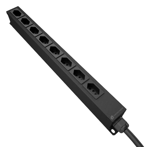 PDU 30A com 8 tomadas verticais padrão NBR14136 20A, ideal para uso residencial, comercial e industrial. Suporta 220V (7.920W) e 120V (4.320W).Modelo