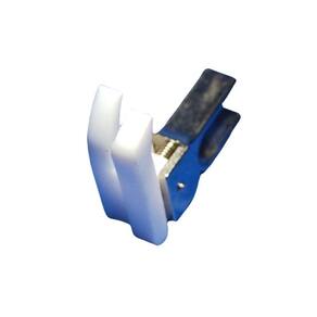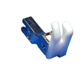 Material de Teflon resistente. Guia articulada no lado Direito. Indicado para pesponto e barras. Medida da guia de 2mm. Compatível com máquinas de costura retas industriais.