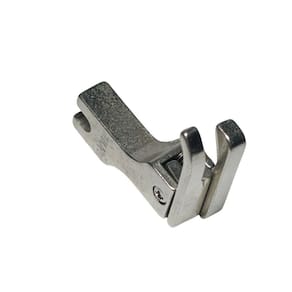 Fabricado em aço resistente de alta durabilidade. Guia articulada de 2mm no lado direito. Ideal para pespontos e acabamento de barras. Compatível com máquinas de costura retas industriais. Acabamento robusto para uso intensivo.