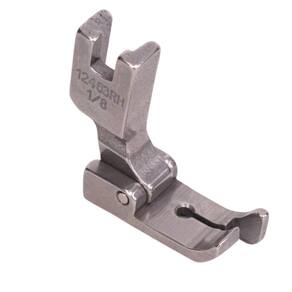 O Pé Calcador Pesponto com Guia Fixo Direito 12463HR 1/8 - P812 é projetado para costuras precisas em máquinas de costura reta industrial. Equipado com um guia fixo, permite um controle exato da borda, facilitando acabamentos de alta qualidade e uniformidade em tecidos variados.