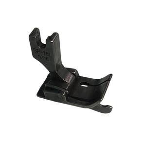 Calcador utilizado para dar acabamentos em costuras externas de peças como calças, bermudas, golas de camisas, serve tanto para firmar quanto para dar acabamento na peça, dando um caimento mais sofisticado. Possui mola que facilita o movimento do calcador para que ele fique bem apoiado na dobra, fazendo com que a peça suba e desça sem entortar a costura.