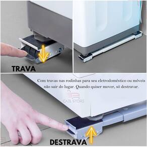 Pé de geladeira pe fogão suporte com rodinha base ajustável Chega de arrastar geladeira, fogão, máquina de lavar, lava louças, entre outros móveis. Agora você terá mais facilidade no seu dia a dia com esta maravilhosa base com rodinhas e melhor, ela é ajustável de acordo com a largura do seu eletrodomestico / moveis. Enviamos em até 24 horas úteis Produto lacrado com garatia e Especificações: Cor do produto: branco Carga máxima: 200kg; Dimensões do produto. a x l 3,5 cm x 4,5cm Peso da embalagem: 1,50kg; Peso do produto: 1,40kg; Itens por caixa: 01 par; Prazo de validade: indeterminado; Composição: aço carbono, plástico; Dimensões do produto mínima 40cm Dimensões do produto máxima 69cm - produto com excelente qualidade; - fácil instalação; - ajuste de profundidade; - ajuste de largura independente conforme necessidade; - sistema de freio; - base antiderrapante; - facilita limpeza, movimentação e protege contra ferrugem. Marca: Não Informado