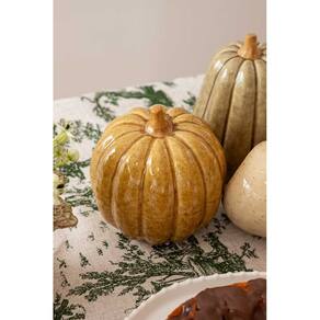 Peça Decorativa Abóbora em Cerâmica Mostarda