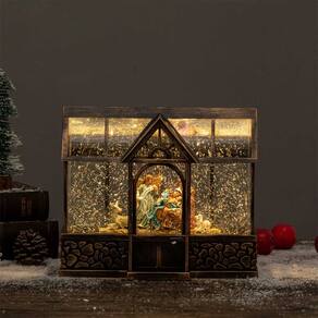 Peça Decorativa Casa Natalina Sagrada Familia Musical com Led 20cm 14659-PL