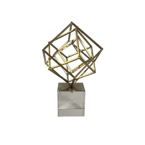 Peça Decorativa Cubos Dourado com Base de Vidro 25cm 15065-PL