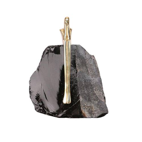 Peça Decorativa de Metal e Obsidian Preto e Dourado
